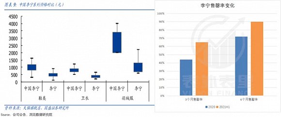 以羽绒服为例,中国李宁定价从2000-4000元,并且折扣水平相对较低,疫情期间也保持在9折以上。