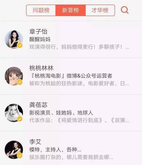 首先,分答的认证、推荐“答主”几乎全来自微博红人。且不说,王思聪、汪峰、章子怡、佟大为这些名人、明星,包括任志强、冯仑、刘春、于莺、巴曙松、王冉、留几手、一毛不拔大师等等微博大V系数加入。