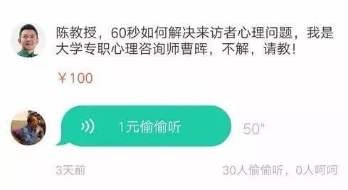 这位陈教授说的是实话,60秒实在是太短,无法传输任何知识。那教授为何还开通了分答平台呢?对着手机说50秒,100元就赚到了,这是主因。