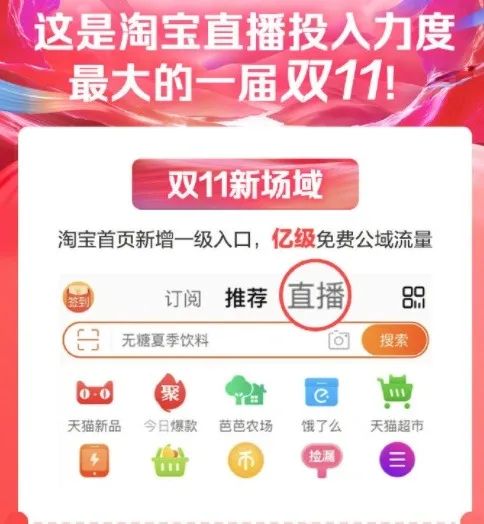2021年9月14日,双11启动大会上,淘宝正式宣布将为APP客户端新增一级频道入口——直播。