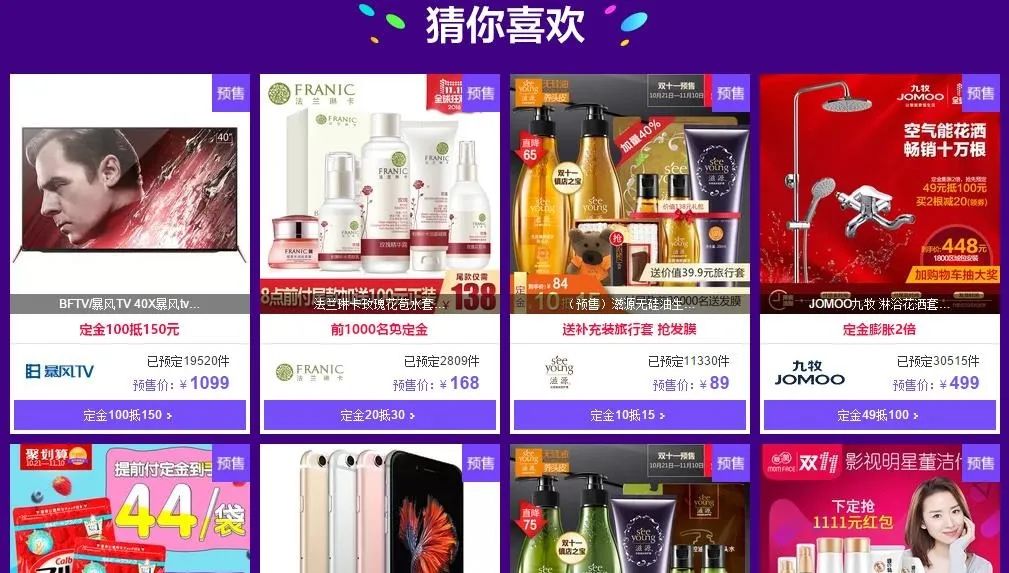 2015年时,手淘还没有完全实现“千人千面”,因为当时战报里显示,pc端和移动端的交易占比还处于不相上下的局面,但是到了双11情况就变了,独立的算法推荐产品出来了——当时我们主会场仍然是赛马,但是分会场出现了‘猜你喜欢’的推荐入口,当然那时候还比较原始,推荐的机制是按照品类来划分的,不像现在可以全类目精准推荐,但的的确确已经是个性化推荐了。