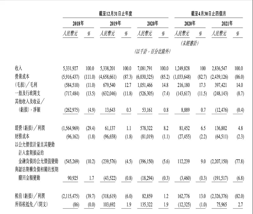 招股书显示,2018-2020年安能物流的营收分别为53.32亿元、53.38亿元、70.82亿元;净利润分别为-21.16亿元、-2.15亿元、2.18亿元。