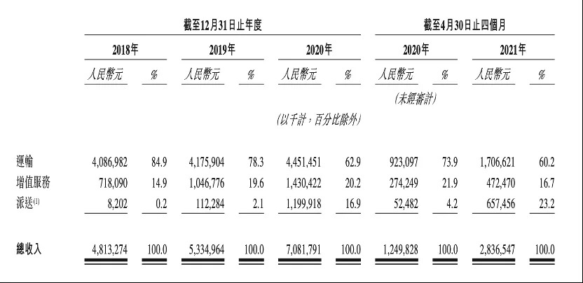 多元化的增值服务在一定程度上缓解了安能物流的增长焦虑,包括向货运合作商提供电子运单、SaaS及移动应用程序、保险及运营管理等服务。这部分收入也是在逐年上涨,2020年较2018年几乎翻倍,毛利率也在80%-90%之间,为安能物流带来了可观的利润,有望成为安能物流的第二增长曲线,但目前的营收占比仍然不高,仍需要时间来检验其成长性。