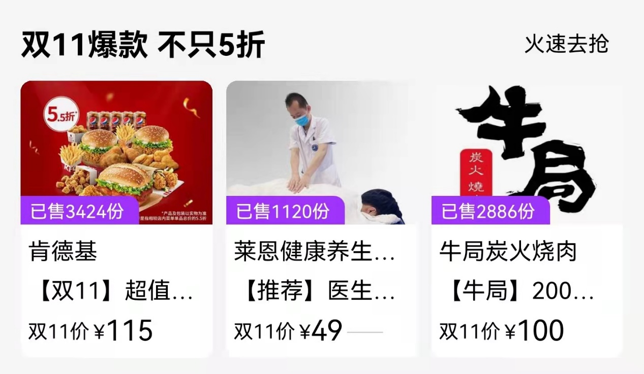 口碑APP数据显示,美食类特惠商品仍是销量最高的品类,交易笔数、品类数量都远超其他类目。值得注意的是,口碑APP今年还推出了新业态下的“双11”特惠商品。