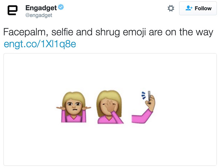 新增emoji里有你女朋友喜欢的耸肩、捂脸和自拍。