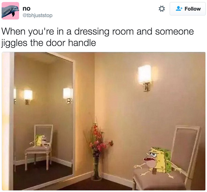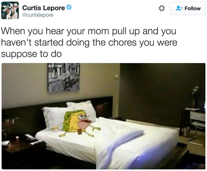 “海绵原始人”通常被用来描述与周围社会格格不入的尴尬心态,比如:“当你听见你妈回家的声音而你还没有做家务的时候。”