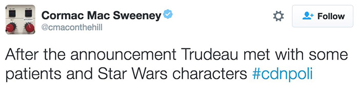 加拿大总理贾斯汀·杜鲁多又被网友们翻出了新萌点:他是一位星战死忠。在最近一次公务出访中,小贾与暴风兵和达斯维达大人谈笑风生的照片成为了社交网络热门。