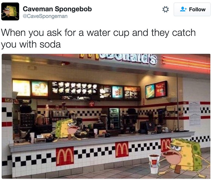 “当你点了一杯水而店员给了你一杯苏打的时候。”
