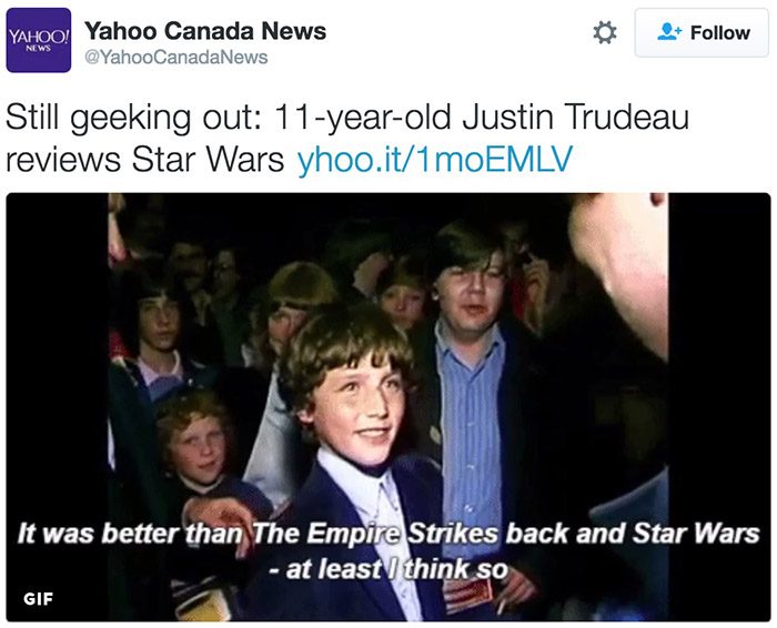 实际上在就任加拿大总理之前,小贾就是一位星战铁粉了,以下是他被逮捕时的照片。