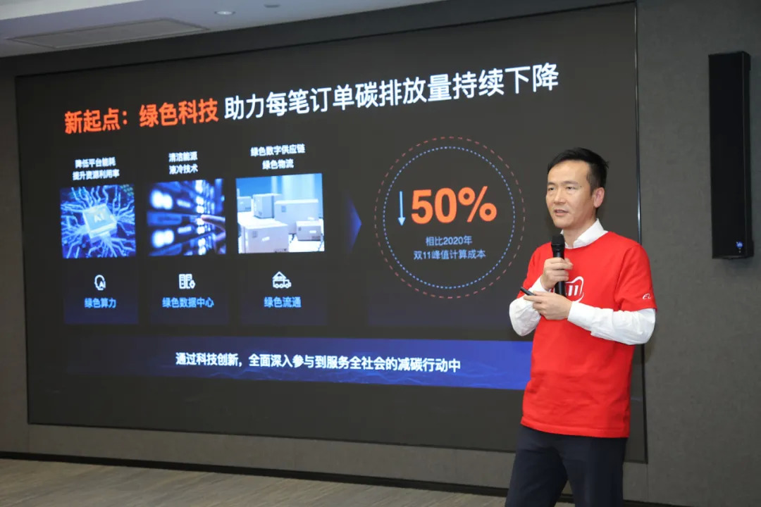 在阿里CTO程立看来,双11已经不仅是一个巨大消费场,更是一个巨大的减碳的试验场,“双11峰值六十万笔每秒是日常的几十倍,过去我们还要多买资源支撑双11峰值,今年通过削峰填谷,我们支撑了一个更大峰值,今年618,我们每笔订单碳排放差不多降18%。回头看,三年大概降了50%。”
