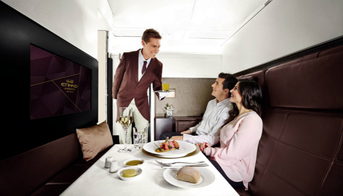 这个客厅、卧室、浴室一应俱全且装修高档的超豪华套房,只在阿提哈德航空的空中客车A380-800系列客机上提供。这是客机史上第一个拥有两房一厅的套房,阿提哈德航空因此赢得了数座奢华旅行类的奖项。