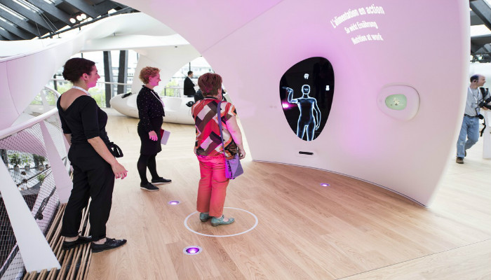 中心顶层的设计未来感十足,分布着各种交互体验设备,展示了雀巢的未来。雀巢集团董事会主席包必达说:“创新是我们的未来。”