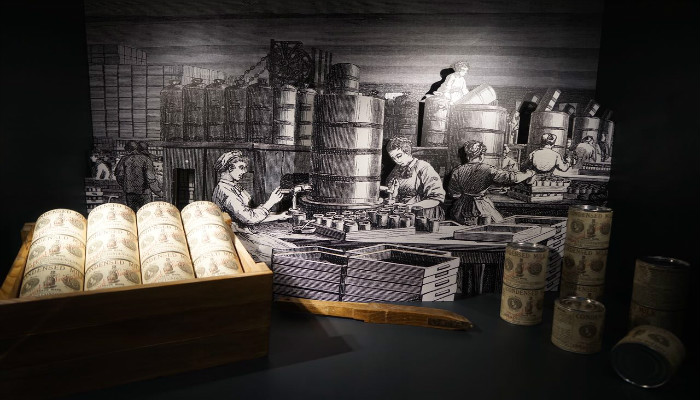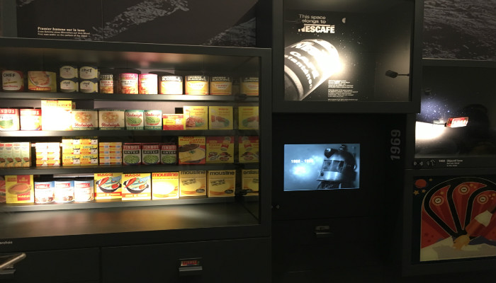 一条时间长廊,展示了雀巢在不同时期的重要产品和设备。