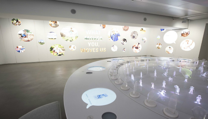探索中心主要呈现了雀巢的过去、现在和将来三个部分。怀旧风格的场景设计、图片、视频、实物揭示了雀巢创立的历史。
