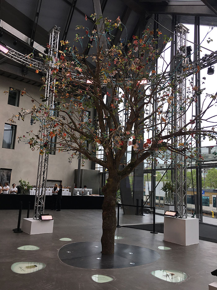 踏进大门,就能看到一棵用各种雀巢产品元素装点的树。