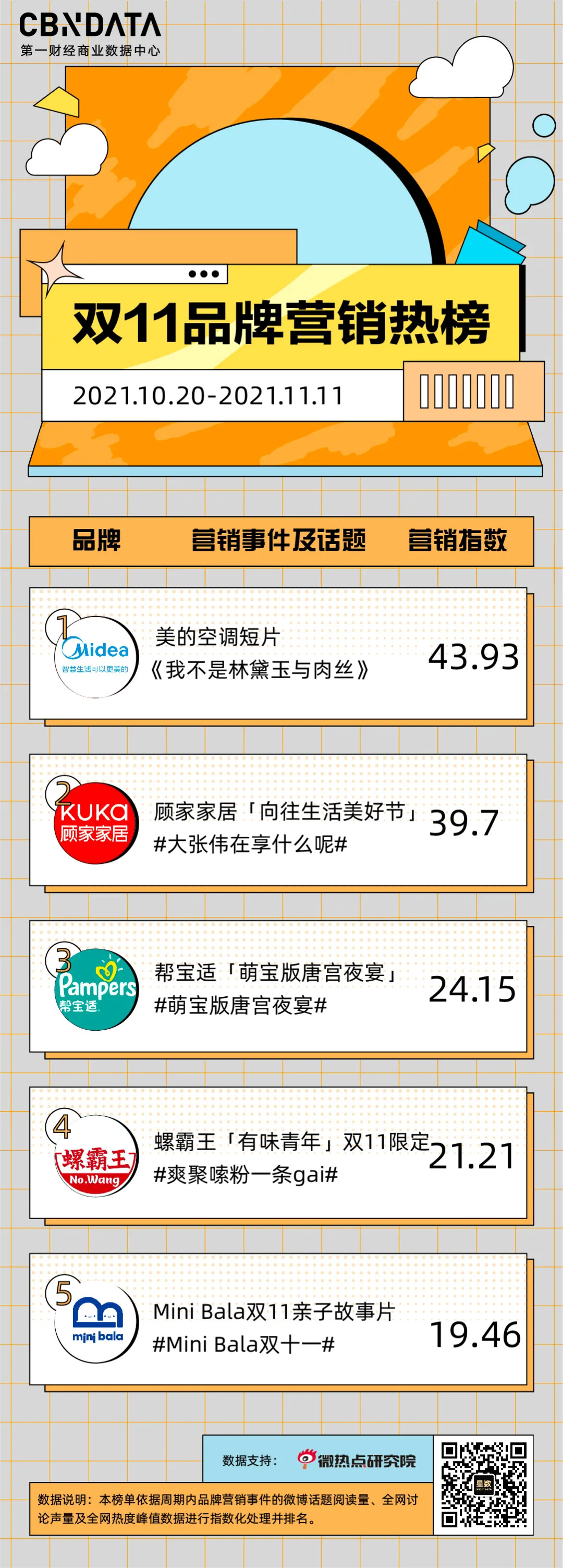 CBNData星数全新开启营销观察栏目,选取双11期间品牌营销事件进行全网热度指数综合测算,得出“品牌x营销事件”热度前5名。