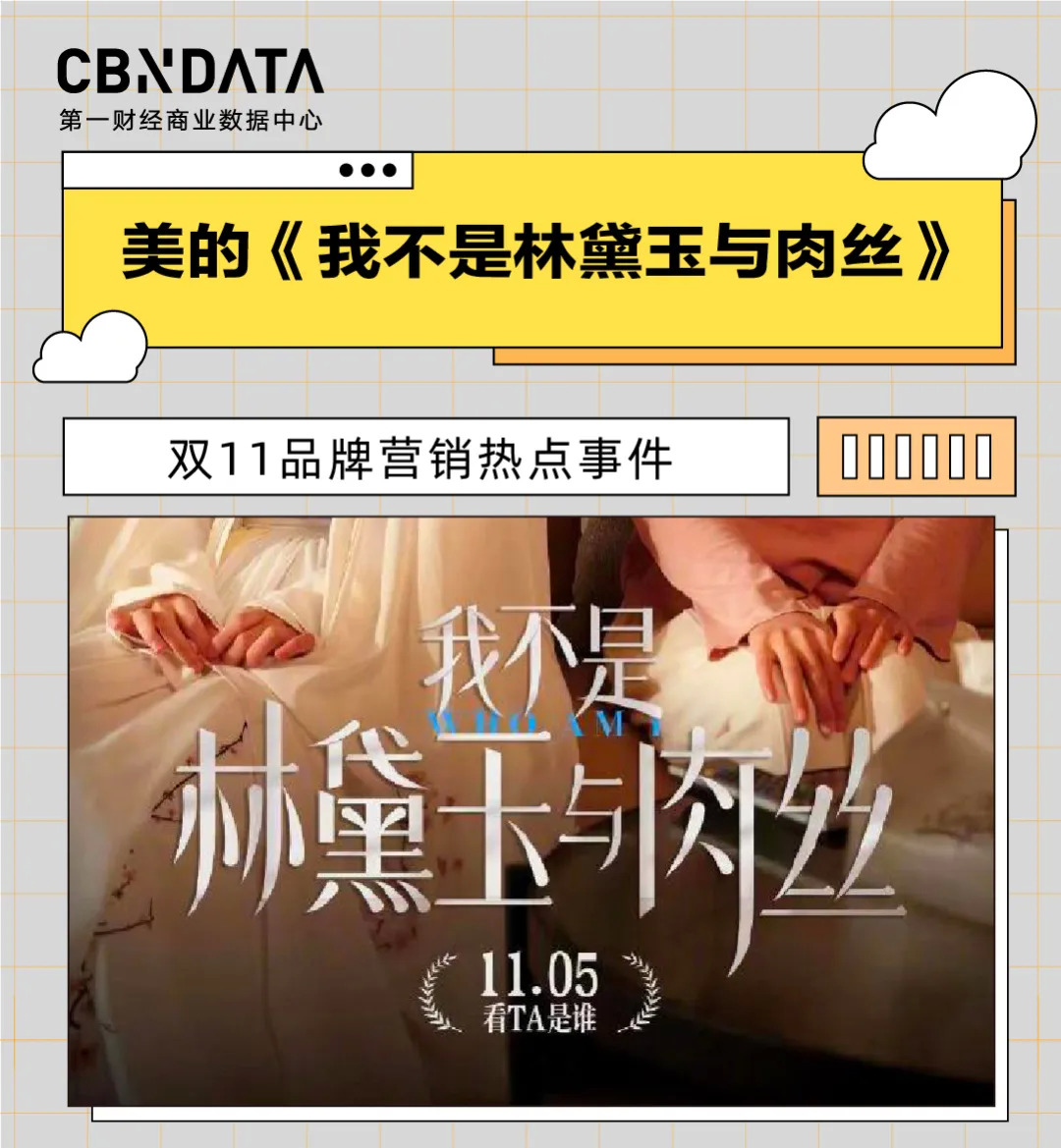 11月4日,美的空调官博发布一支名为《我不是林黛玉与肉丝》的微电影,影片用“黛玉”和“肉丝”两个角色表演代入到日常生活中,表达吹空调风不适、开窗风力过大的问题,以此来引出美的空调产品是如何解决这两大问题,甩掉“黛玉”和“肉丝”标签的故事。该片在微博获得1431万次播放。