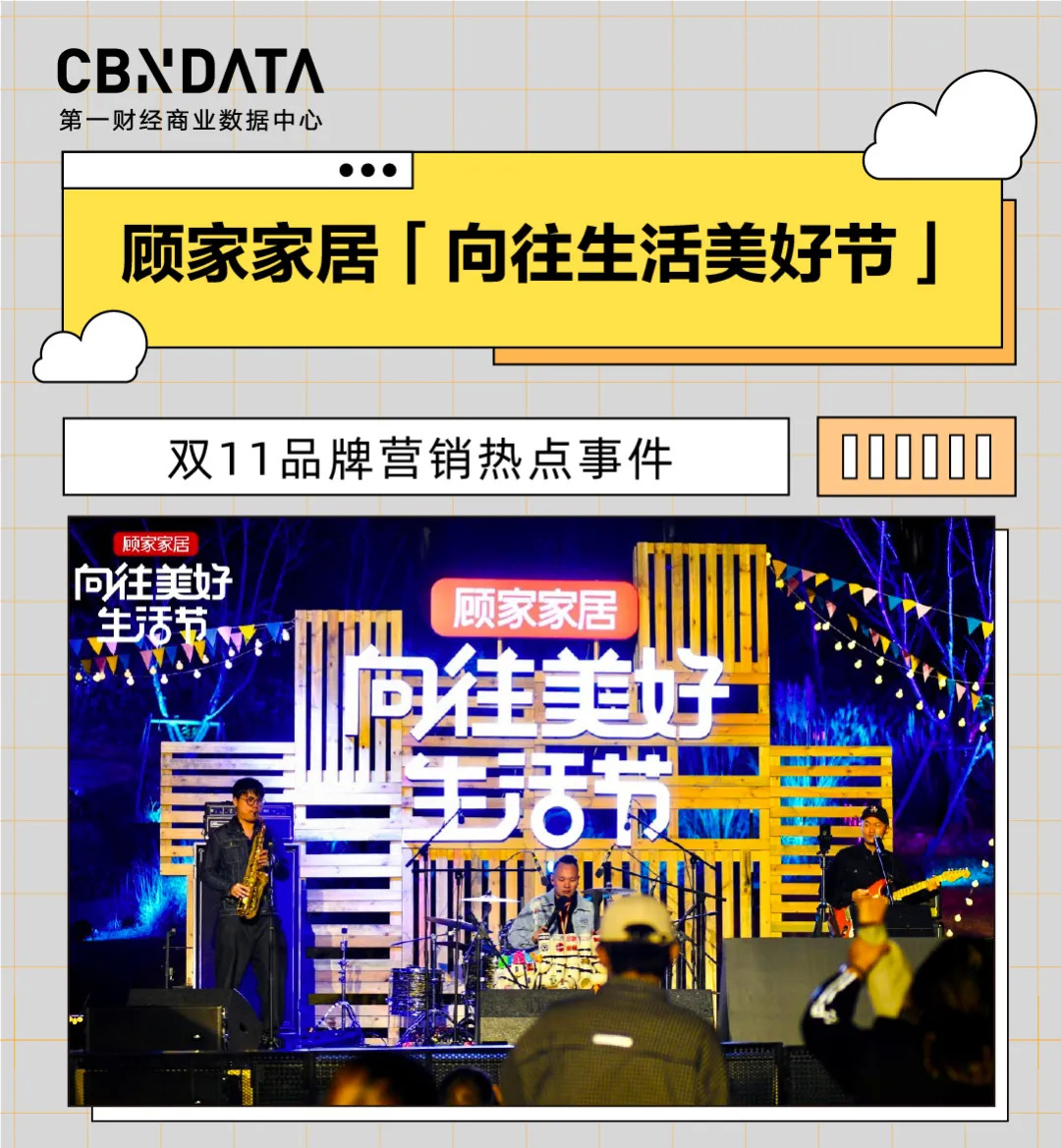 10月29至31日,顾家家居还在湖州德清上渚山奇幻谷开启“向往美好生活节”,为消费者打造各类露营体验活动,并邀请大张伟及众多KOL到场助力。双11期间,顾家家居通过“造节”的概念,联动线上线下营销,整体提升品牌调性。