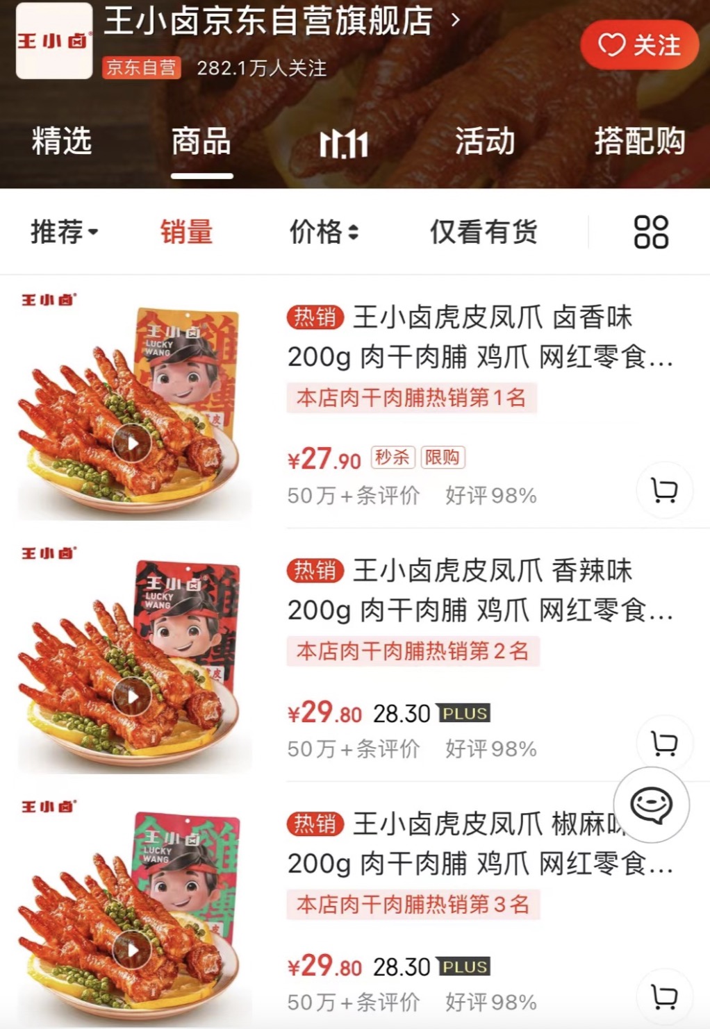 刚过去不久的这个双11,王小卤卖掉了1200万只凤爪。