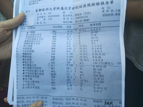 5月26日,李女士来学校开家长会,当时她闻到教室内味道不对。回家后看到有家长在群里讨论这件事,27号专门带乐乐在301医院儿科做检查,检查结果显示血常规中一项指标超标。“医生明确的说,跟闻到的刺激性的味道有关。”李女士说。乐乐从上周五一直休学到现在。