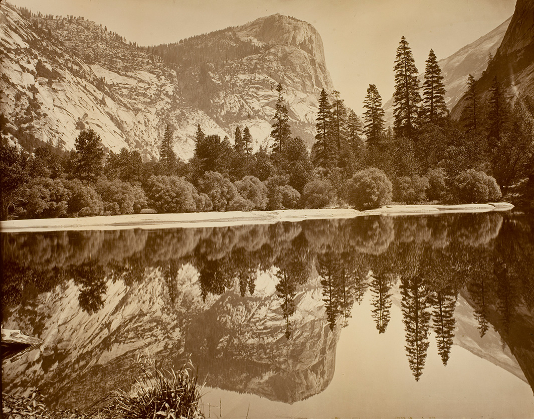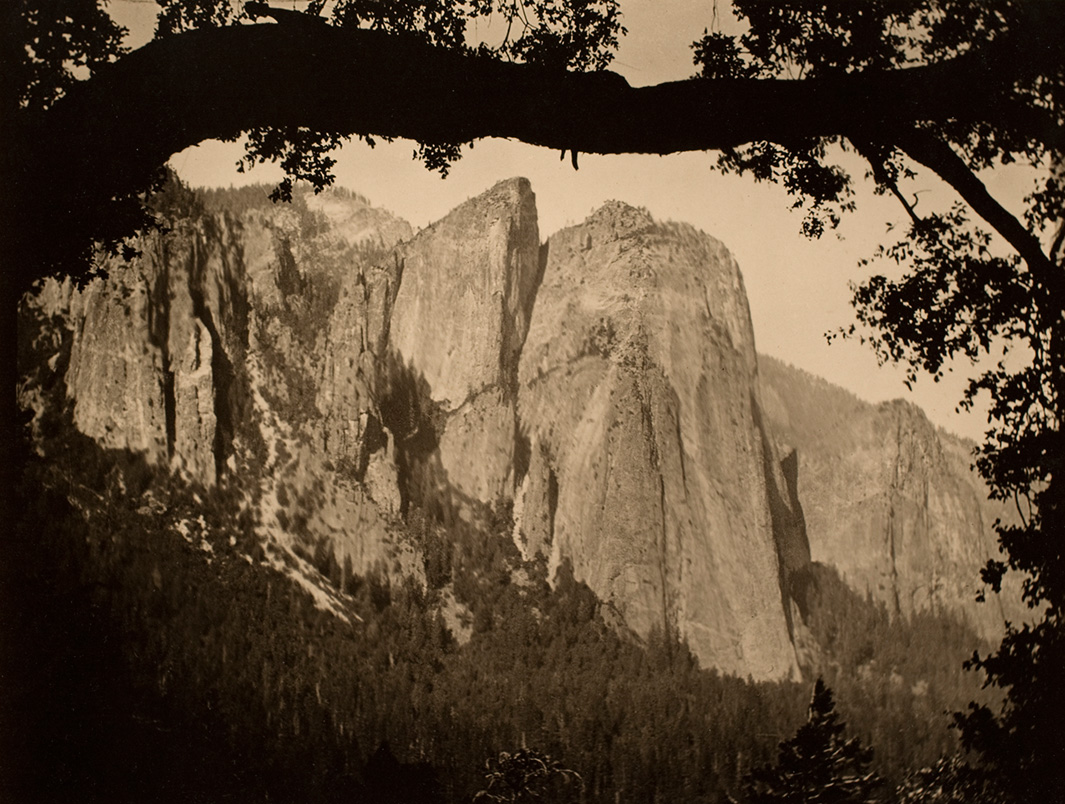 首先,展览展现了Carleton Watkins在内的早期摄影家在拍摄标志性地形时创造的“既定视角”的影响力。Allen介绍说,约塞米特蒂国家公园里的船长岩就是一个很好的例子,摄影师Watkins和Eadweard Mubridge都曾拍过船长岩。“19世纪时,每个来到这里的摄影师拍下的照片都一模一样,Ansel Adams也不例外,直到今天也是如此。”