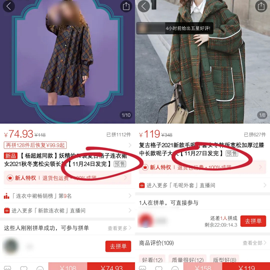 “第二种情况则是工厂产能不足,生产跟不上,只能拉长时间。第三种则是为了抢占市场,先用预售把商品推入市场,把喜欢这个款式的人群拉过来,这样就稳固了自己的顾客,顾客也不会流失到别的店铺去。”肖北补充道。