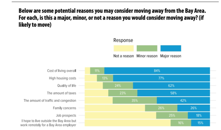 除此之外,硅谷节节攀升的创业成本也让很多创业者们望而却步。近二十年来,硅谷科技的繁荣催生了巨额的财富,但同时也让硅谷迅速成为了全世界“最贵”的地区之一。上个月Joint Venture刚结束一项对硅谷人才吸引力的调查,其中,有71% 的受访者认为现在硅谷的生活质量比五年前更差,有56%的人表示考虑会在未来几年内离开硅谷。高昂的生活成本成为了主要推动因素。