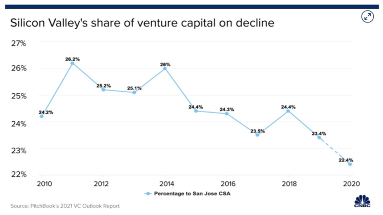 也就是说,资金开始从硅谷逐渐流向美国的其他地区。