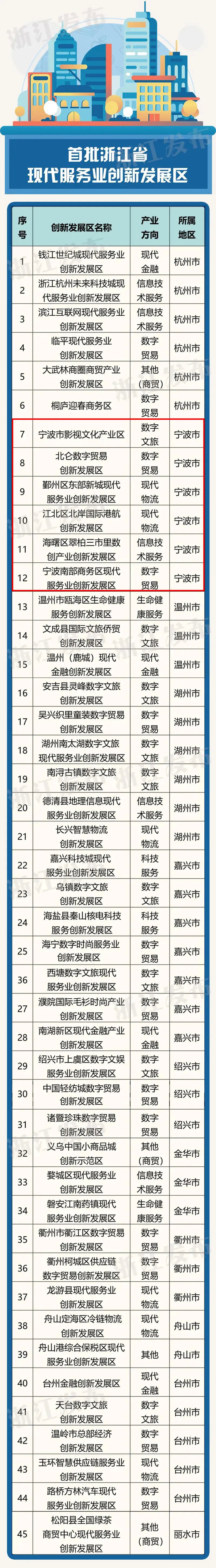 为进一步推进浙江服务业高质量发展,近日,浙江省现代服务业发展工作领导小组办公室公布了首批浙江省现代服务业创新发展区名单,宁波6家园区入选。