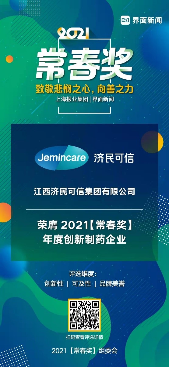 11月16日,上海报业集团l界面新闻揭晓 2021【常春奖】终榜,正式公布了本年度获奖名单。聚焦大健康行业的升级和变化,综合社会各界的意见与建议,来自制药、医疗器械、药品销售、医疗服务、健康管理、健康金融等领域的31家企业夺得了年度大奖。江西济民可信集团有限公司凭借其在行业的业务能力荣膺年度创新制药企业。