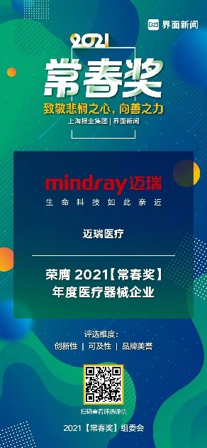 11月16日,上海报业集团l界面新闻揭晓 2021【常春奖】终榜,正式公布了本年度获奖名单。聚焦大健康行业的升级和变化,综合社会各界的意见与建议,来自制药、医疗器械、药品销售、医疗服务、健康管理、健康金融等领域的31家企业夺得了年度大奖。迈瑞医疗凭借其全球领先的医疗设备和解决方案荣膺年度医疗器械企业。