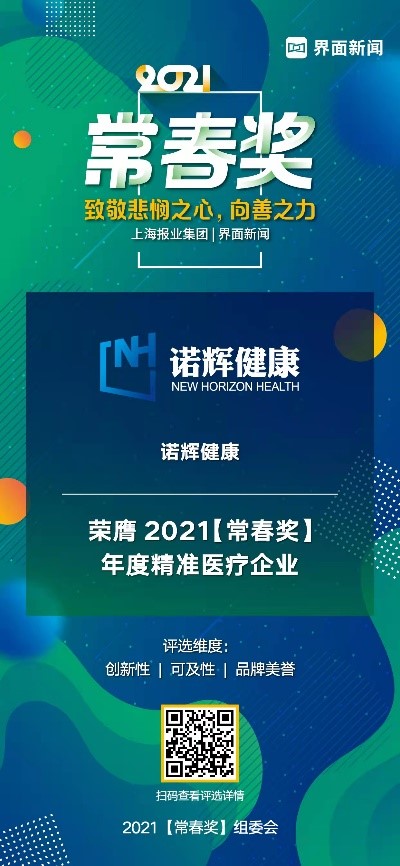 11月16日,上海报业集团l界面新闻揭晓 2021【常春奖】终榜,正式公布了本年度获奖名单。聚焦大健康行业的升级和变化,综合社会各界的意见与建议,来自制药、医疗器械、药品销售、医疗服务、健康管理、健康金融等领域的31家企业夺得了年度大奖。诺辉健康凭借其癌症筛查技术的创新荣膺年度精准医疗企业。