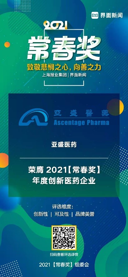 11月16日,上海报业集团l界面新闻揭晓 2021【常春奖】终榜,正式公布了本年度获奖名单。聚焦大健康行业的升级和变化,综合社会各界的意见与建议,来自制药、医疗器械、药品销售、医疗服务、健康管理、健康金融等领域的31家企业夺得了年度大奖。亚盛医药凭借其创新药物的研发荣膺年度创新医药企业。