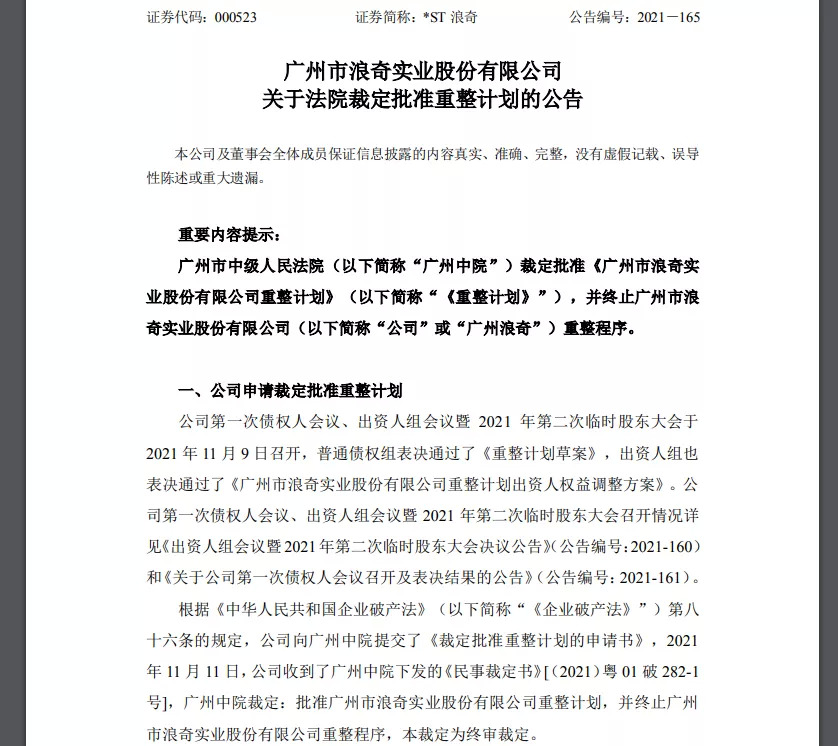 但是,纵观广州浪奇这几年爆出的离谱事件,如今的广州浪奇已是游走在崩盘边缘。前不久,广州浪奇旗下控股的两家子、孙公司被法院裁定受理破产清算申请,广州浪奇自身也在为免于退市和破产做最后的挣扎。