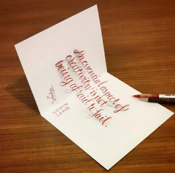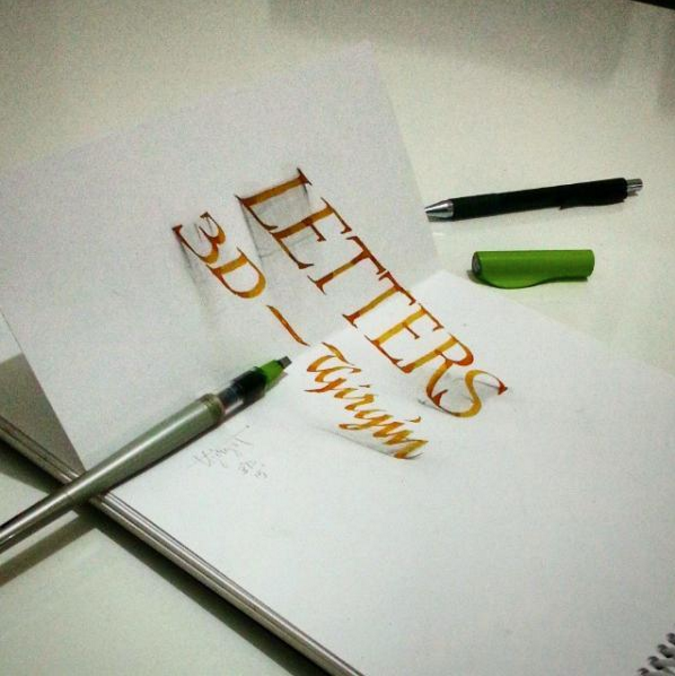 土耳其艺术家Tolga Girgin不只能写得一手标准意大利花体字,还能让字体浮出纸面看起来像是立体纸雕,看来就算是基本的「写字」,艺术家也能搞得很与众不同!