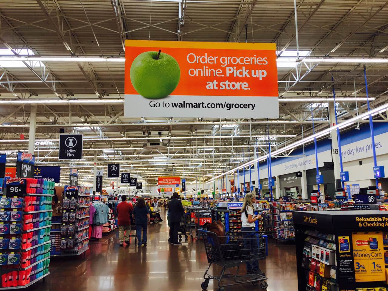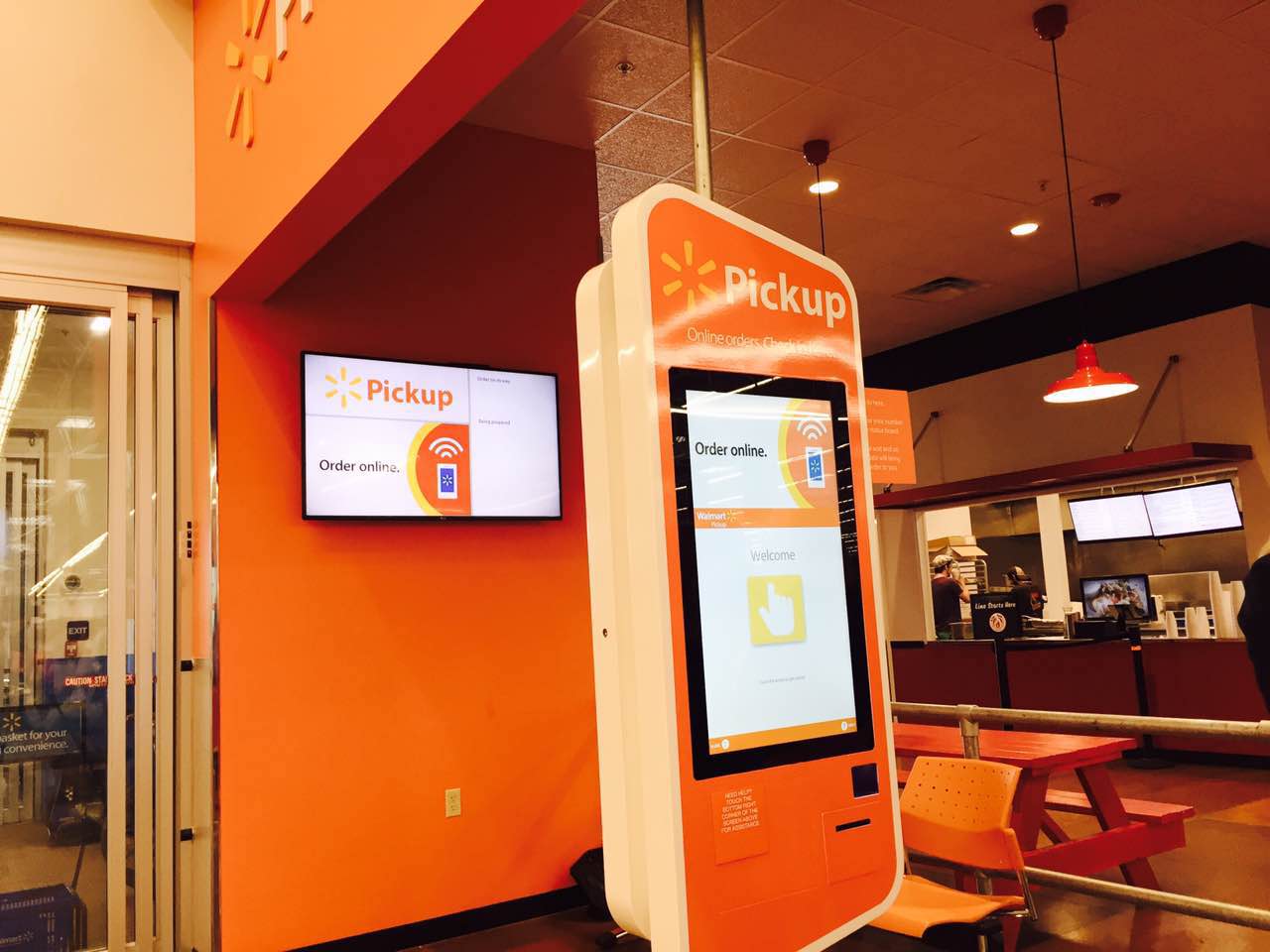 为了跟亚马逊竞争,沃尔玛不仅开始测试跟亚马逊类似的Prime的免费快递服务,还开始进行线上线下结合的“沃尔玛食品取货站”(Walmart Pickup-Grocery)网点的测试,这是一种专门为购买低温食品的线上订单设计的即停即走的取货网点,仓库与沃尔玛门店分开,被设计为单独的建筑。消费者下单后,两小时后可以将车开至类似加油站的取货站,不用下车,在取货站柱子上的显示屏上输入姓名或者订单号,点击取货,5分钟后,取货站对面的Pickup-Grocery仓库就有工作人员将商品送至购物者的车上。