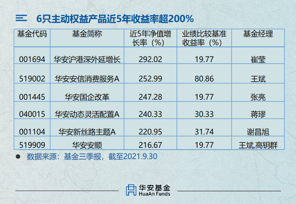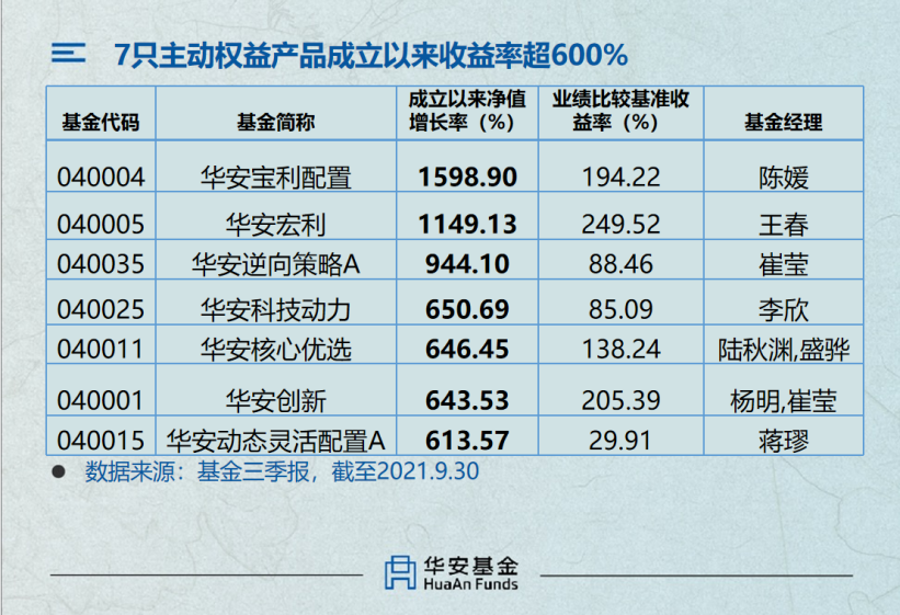 作为中国公募基金行业先行者之一,在成立的近24年里,华安基金打造了多只“长跑优胜选手”:截至三季度末,7只产品自成立以来的收益率超过600%!更有2只产品跻身稀有的10倍基榜单。