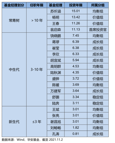 基于市场风格的频繁轮动,都说基金江湖总是“但见新人笑”,而华安基金则是“老中青”三代齐发力,投研团队不断层。