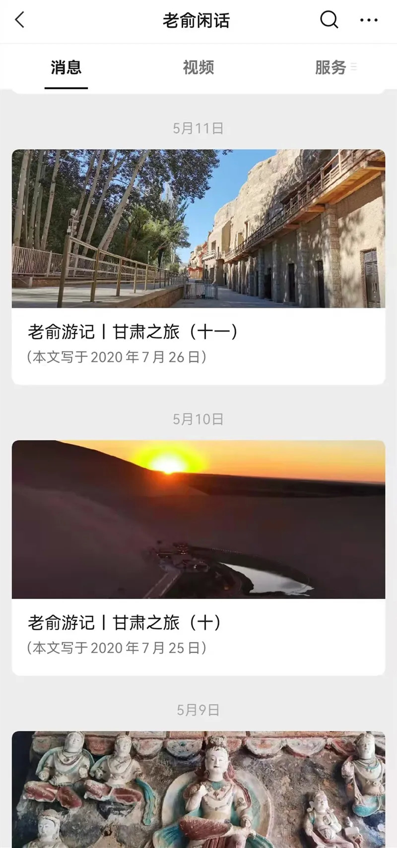 这次甘肃之行为期十一天,俞敏洪写了十一篇游记记录。在游记的最后他写道“有时候,我们用尽一生,只为等到命中注定会来到的那一刻。”