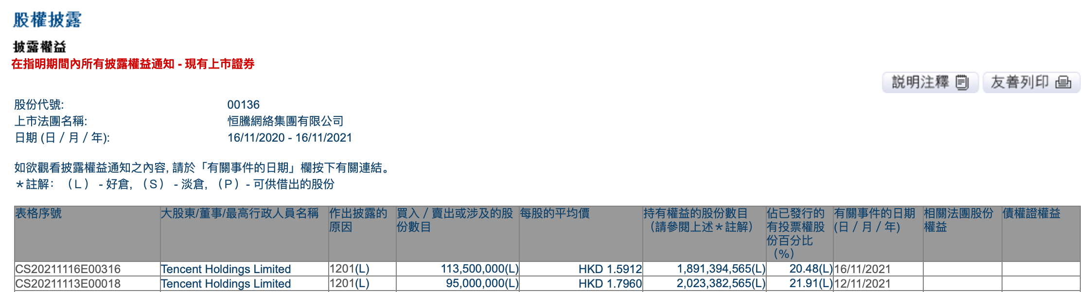 11月16日消息,腾讯今日以平均每股1.5912港元的价格出售1.135亿股恒腾网络股份。腾讯对恒腾网络持股比例从21.91%降至20.48%。