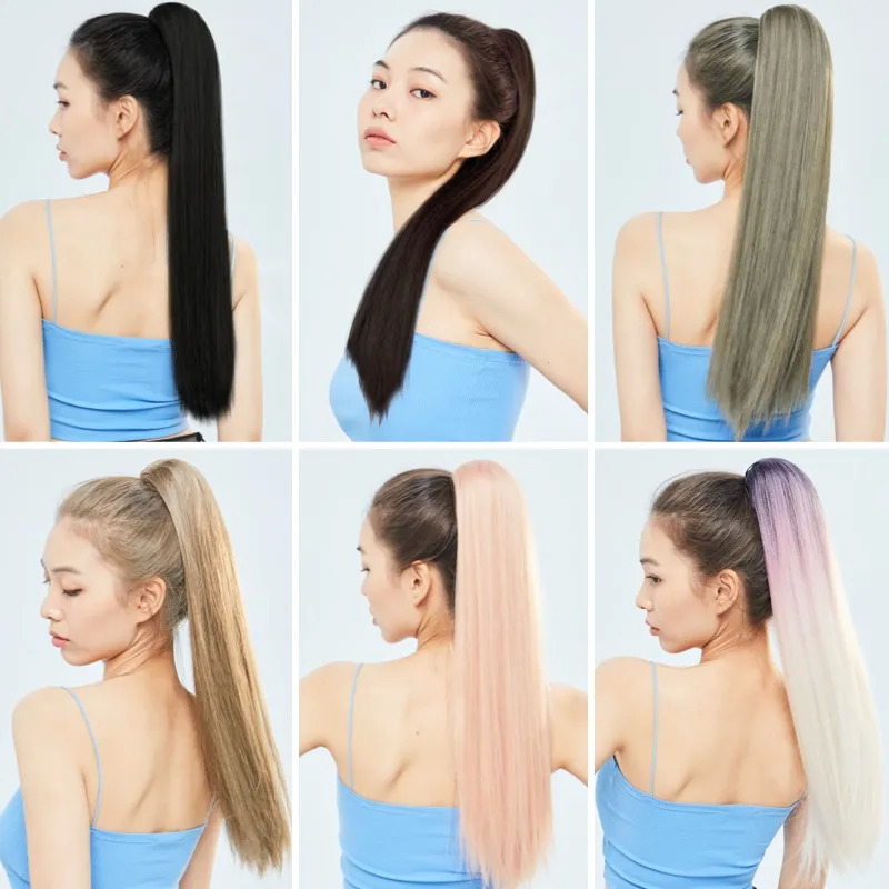 黑棕色等自然颜色的假发片可以用来增加局部发量、让头顶蓬松。它衍生出了多种形态:刘海片、高马尾、丸子头、颅顶增高片等等。