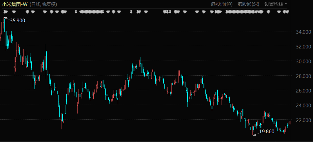 小米集团股价表现(2021年1月至今)