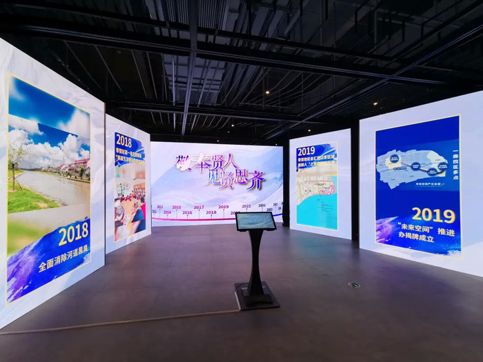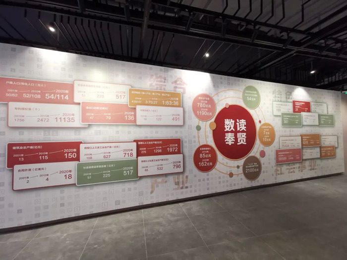 “东方美谷”、“未来空间”、“数字江海”、“一川烟雨”……从产业变革、新城崛起、乡村蝶变,到美美与共的贤文化、民生福祉,在这二十年的发展变化里,每个人都有属于自己的意义非凡的词汇。在展览结尾处,还设置有留言板和电子照片墙,游客们还可以在这里留下自己对过去的感激、对未来的祝福。未来的奉贤,未来的美好生活,我们一起奋斗,一起加油!