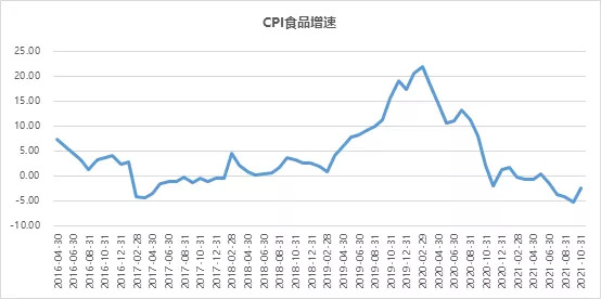 而CPI食品类增速在9月创出-5.2%的阶段新低后,10月出现了反弹。猪肉价格下跌拖累了CPI食品项。同样,近期猪肉价格的反弹也带动了10月食品项回暖。