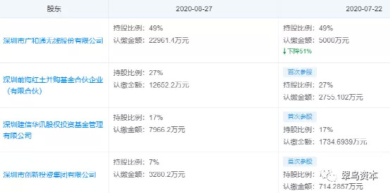 到了2020年7月22日,股权结构就发生了变化,出现三家首次参股的机构,也就是上文提及的前海红土、深创投和建华开源基金。