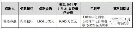 注意看时间点,2020年11月锐凌香港(作为借款方)与招商银行(作为贷款方)签署了《贷款协议》,由招商银行离岸金融中心向锐凌无线提供贷款9900万美元,或并购交易所涉交易对价总额的60%孰低者。
