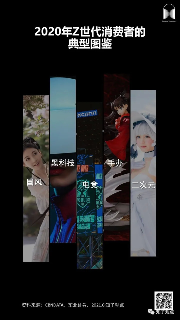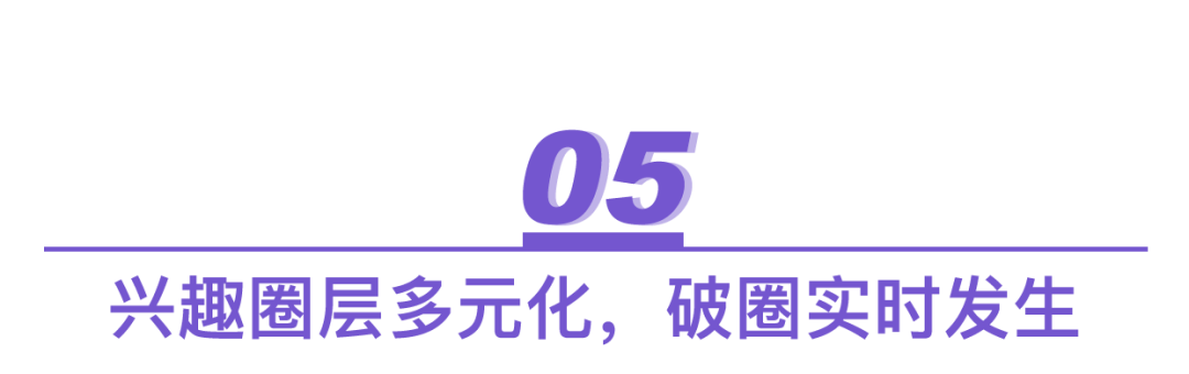 兴趣圈子广泛,是他们的特征。据CBNDATA公布的Z世代五大圈层图鉴可知:电竞、国风、二次元、黑科技、手办都是年轻人关注的内容,“会玩”、“爱玩”是这个群体的标签。