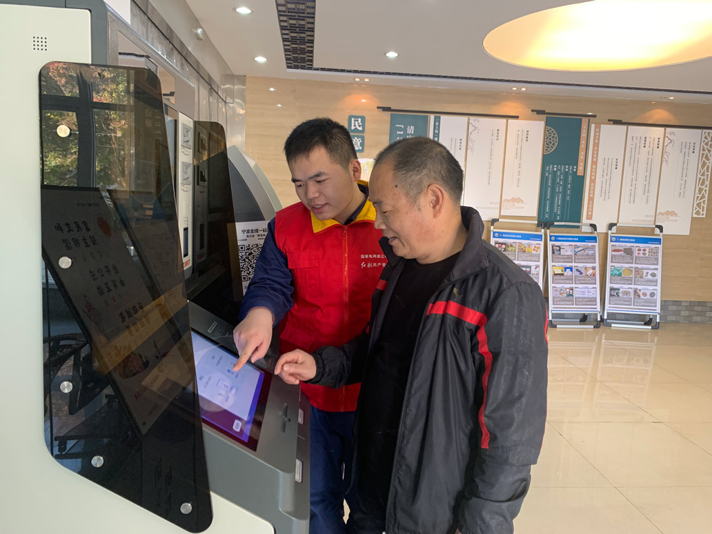 11月17日,在慈城镇枫湾社区党群服务中心,国网宁波供电公司江北供电分公司工作人员引导居民在浙江省政务服务“一网通办”自助终端机上完成用电过户办理,为群众提供更方便、更快捷的电力服务。