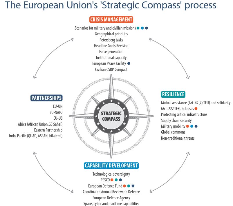 面对变化的国际形势和地区挑战,特别是俄罗斯在欧洲和其他地区“采取的与欧盟价值观和利益相冲突的行动”,欧盟需要为未来5年到10年的安全和防务设立一个统一的战略路线。