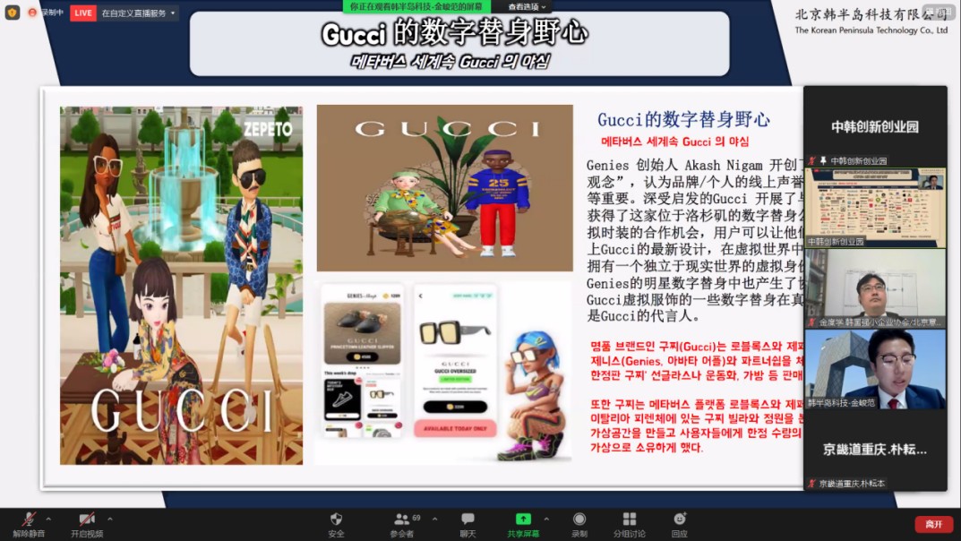 2021年11月17日,由成都高新区高新区科技和人才工作局主办,光谷创业咖啡承办,韩国京畿道经济科学振兴院重庆代表处协办的中韩创新创业园投资合作推介会在成都高新区菁蓉汇圆满举行。本次推介会通过ZOOM线上会议的形式展开。